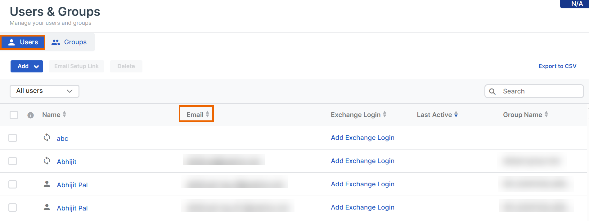 Stellen Sie sicher, dass alle Benutzer in den Benutzergruppen eine gültige E-Mail-Adresse haben.