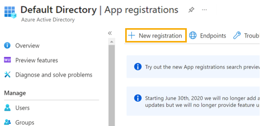 En la página Registros de aplicaciones, haga clic en Nuevo registro.