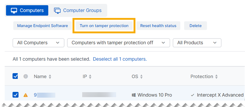 2. Viene visualizzato un elenco dei computer che richiedono attenzione. Selezionarli e cliccare su Attiva il Blocco rimozione.