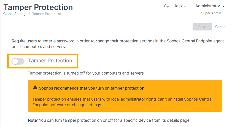 Se viene visualizzato un avviso che indica che il Blocco rimozione è disattivato per alcuni dispositivi individuali, è possibile attivarlo ora. Vedere Risoluzione dei problemi del Blocco rimozione per endpoint o server.