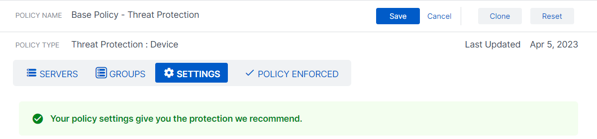 4. La scheda Impostazioni mostrerà ora che è stata applicata la protezione consigliata.