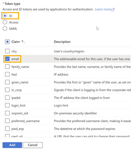 Sotto Tipo di token, selezionare ID e successivamente E-mail.