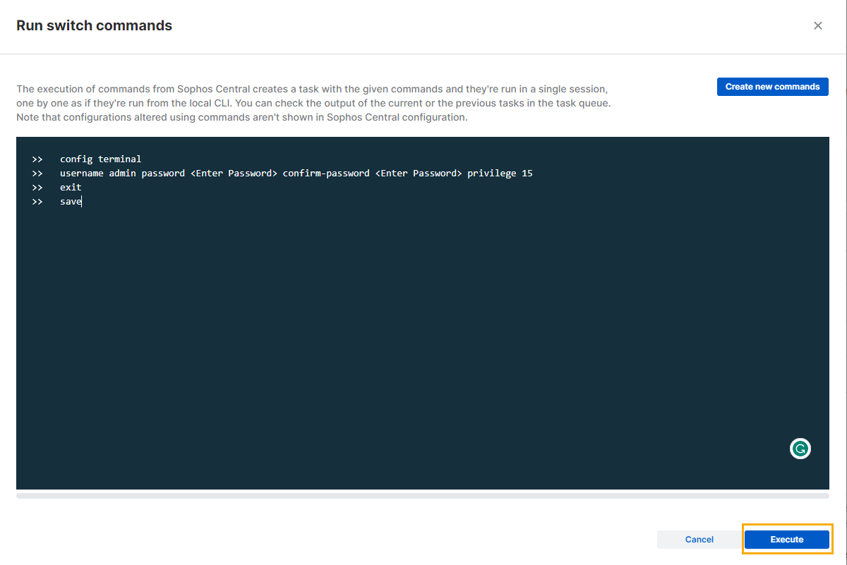 Cliccare su Esegui comandi.