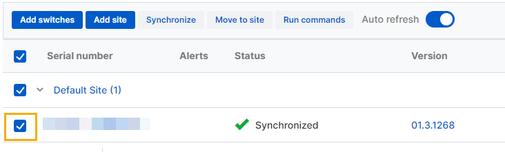 Viene creata un’attività per inviare i comandi allo switch. Per verificare l’avanzamento, cliccare sul numero di serie dello switch e aprire la Coda delle attività.