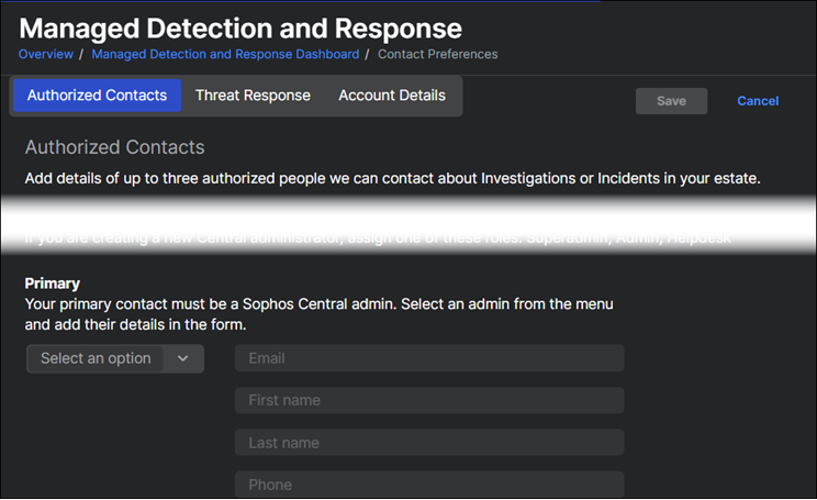 MDR Operations チームが連絡できる管理者を組織内で指定していることを確認してください。