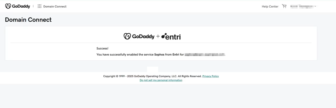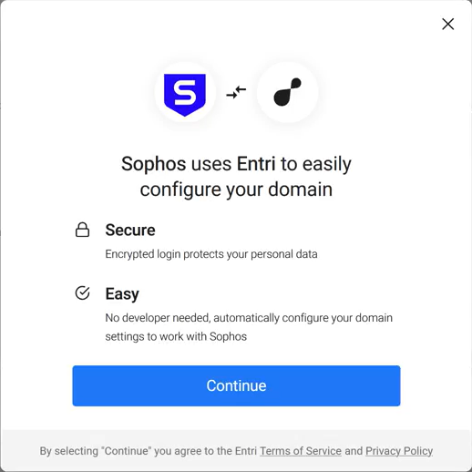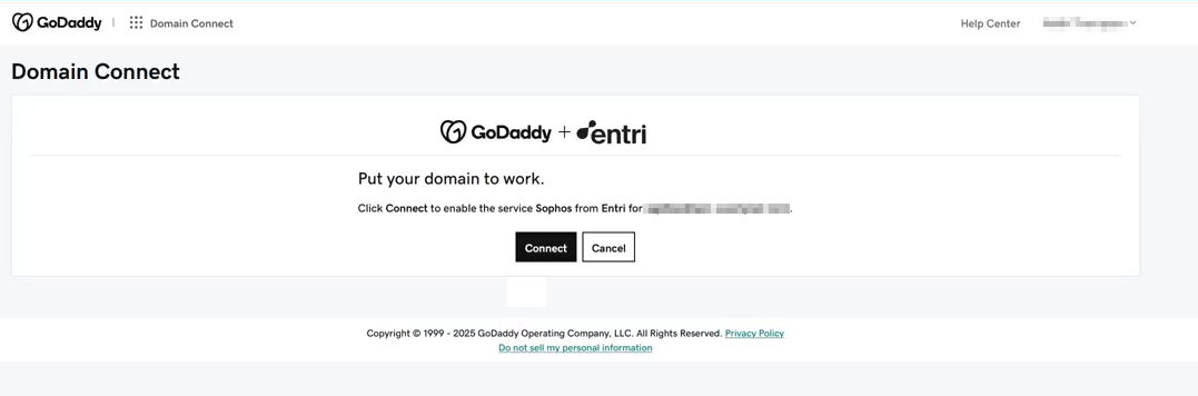 ソフォスは Entri を使用して、ドメインを安全に設定します。この例では、GoDaddy が使用されています。