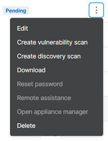 スキャナのエントリで、「アクション」列の 3つのドットをクリックします。
