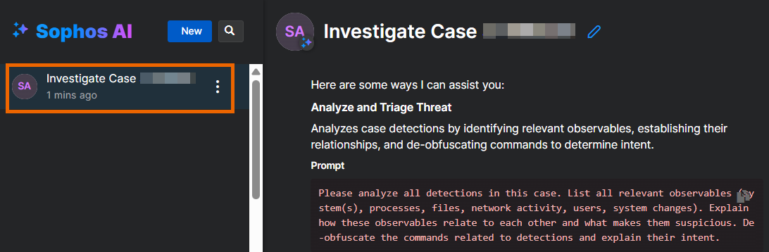 다른 Sophos Central Admin은 AI 어시스턴트를 사용하여 동일한 사례를 조사할 수 있지만, 귀하만이 시작한 채팅을 볼 수 있습니다.