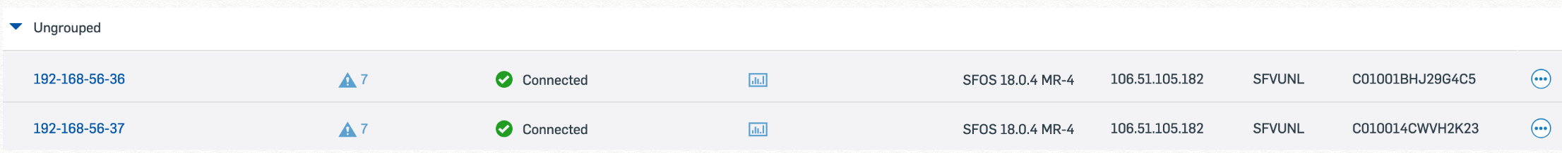 A imagem abaixo mostra dois firewalls separados gerenciados no Sophos Central.