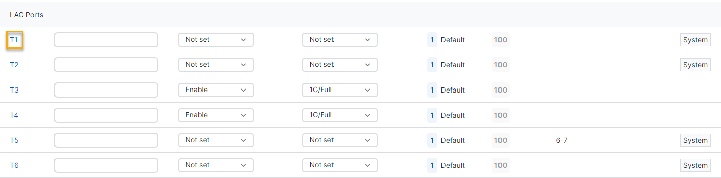 向下捲動至 LAG 連接埠部分,然後按一下要用作 LAG 連接埠的連接埠。