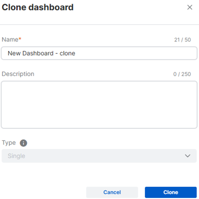 Puede clonar paneles de control personalizados. De este modo se crea una copia del panel de control que puede editar para crear uno nuevo.