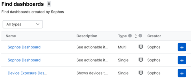 Puede buscar más paneles de control de Sophos y añadirlos a su lista de paneles de control.