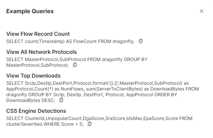En la lista Consultas de ejemplo, busque la consulta que desee ejecutar. Haga clic en el icono Copiar