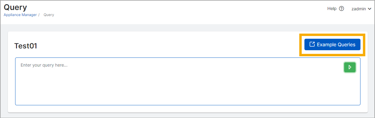 En la página Consulta, haga clic en Consultas de ejemplo para ver las consultas predefinidas.
