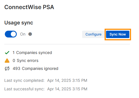 Klicken Sie unter Nutzungssynchronisierung auf Jetzt synchronisieren.