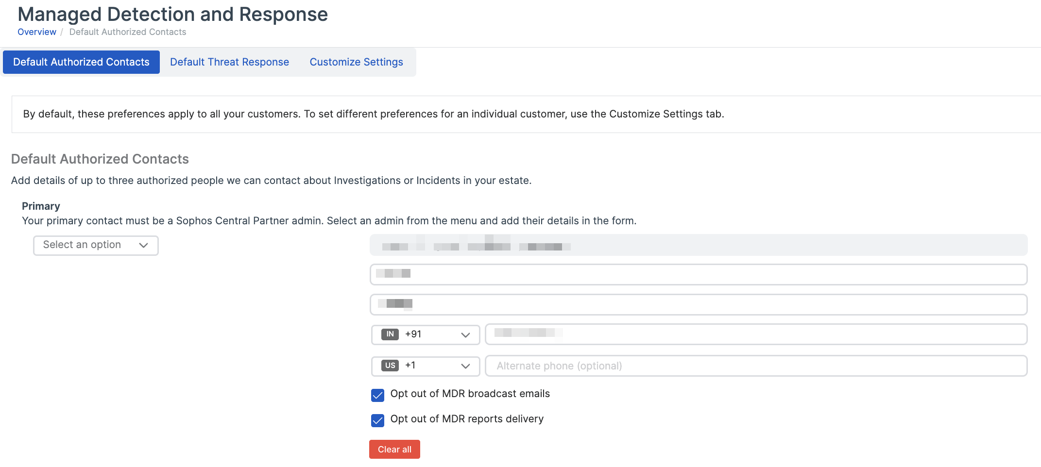 È possibile configurare impostazioni di MDR personalizzate per clienti specifici. Si possono ad esempio scegliere contatti MDR diversi per clienti diversi.