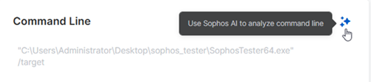 Anhand von Sophos AI können Sie die Befehlszeile analysieren, die durch die Bedrohung ausgeführt wurde, die den Fall generiert hat.
