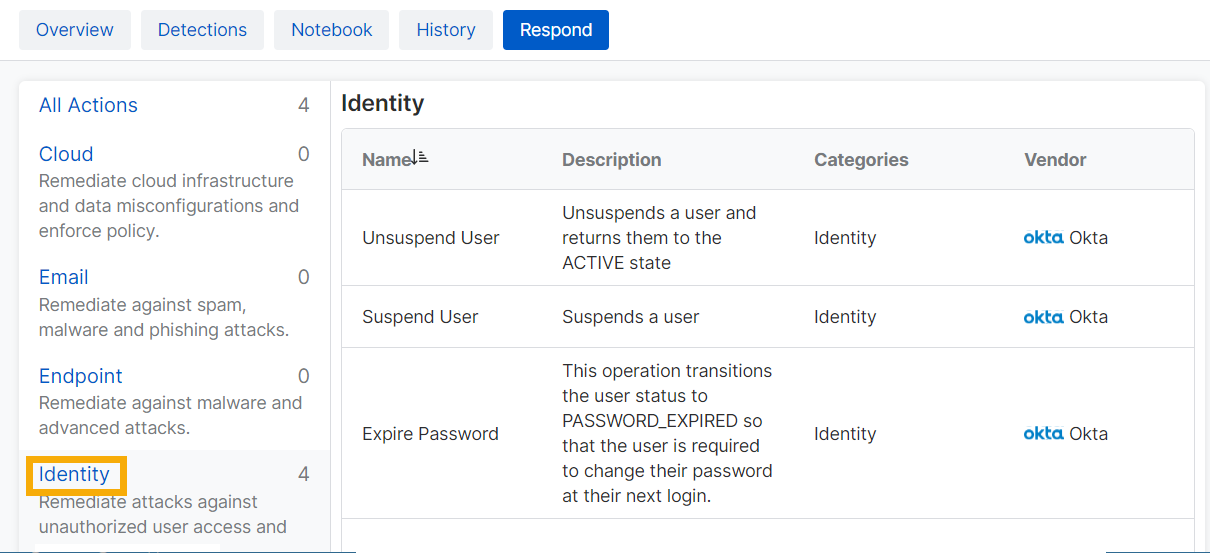 Suchen Sie die gewünschte Maßnahme. Klicken Sie auf den Produkttyp Identität, um die für diesen Typ verfügbaren Maßnahmen anzuzeigen.