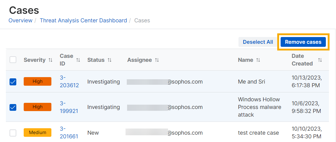 - Gehen Sie zu Bedrohungsanalyse-Center > Fälle.