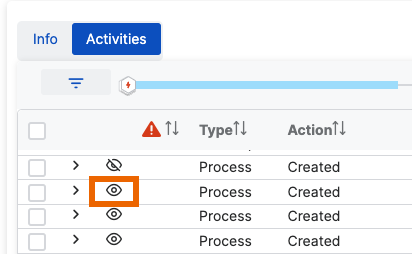 Klicken Sie auf das Augensymbol neben dem Prozess, um ihn anzuzeigen. Klicken Sie erneut auf das Symbol, um den Prozess auszublenden.