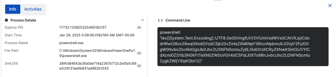 , um eine Analyse der Befehlszeile zu generieren.Weitere Informationen zum Tab Aktivitäten finden Sie unter Mit einem Prozess verknüpfte Aktivitäten.