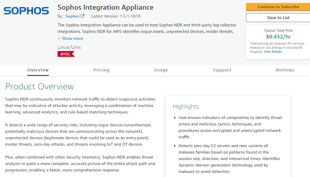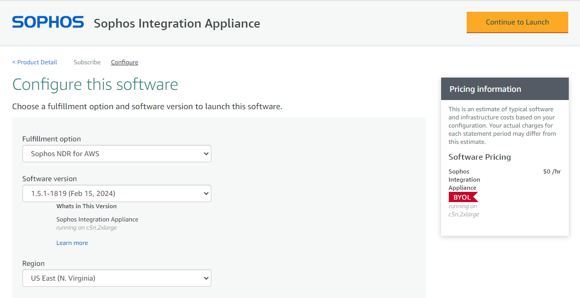 - „Sophos Integration Appliance“ in AWS abonnieren.