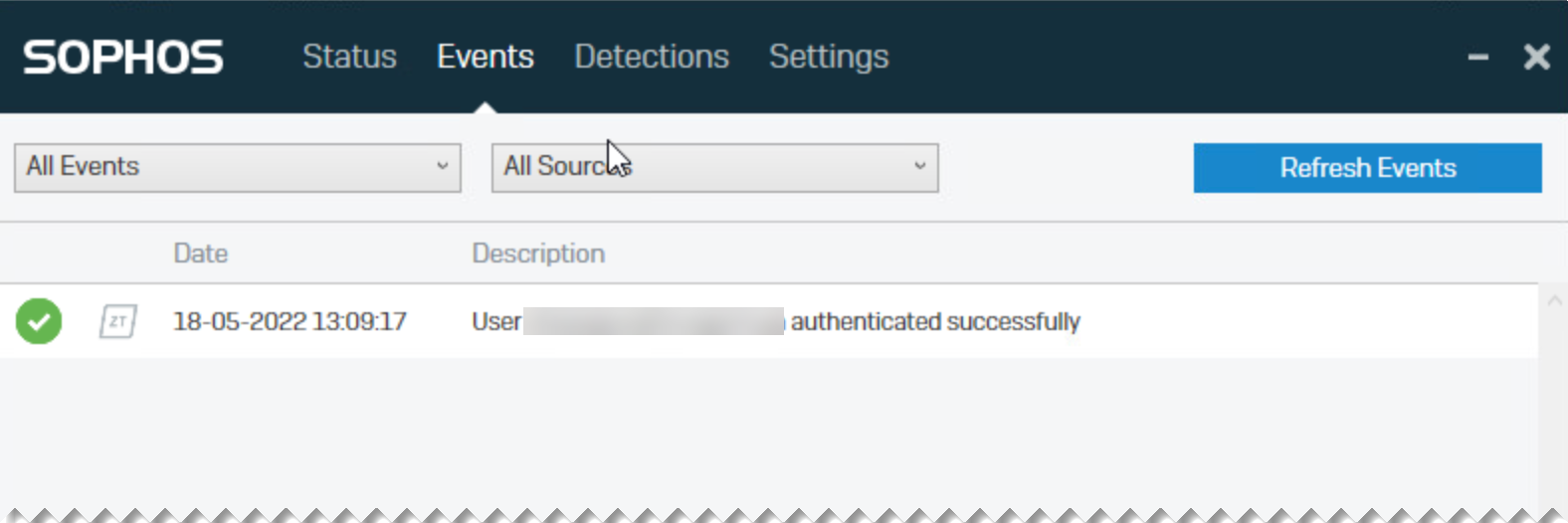 Auf der Seite Ereignisse können Sie sehen, dass die Authentifizierung erfolgt ist.