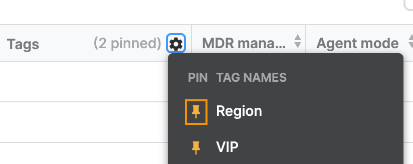 Sie können Tags so anheften, dass sie auf der Seite Computer und Server in der Tag-Liste an erster Stelle erscheinen.