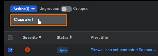- Select the alert in the alerts list, go to Actions, and click Close alert.