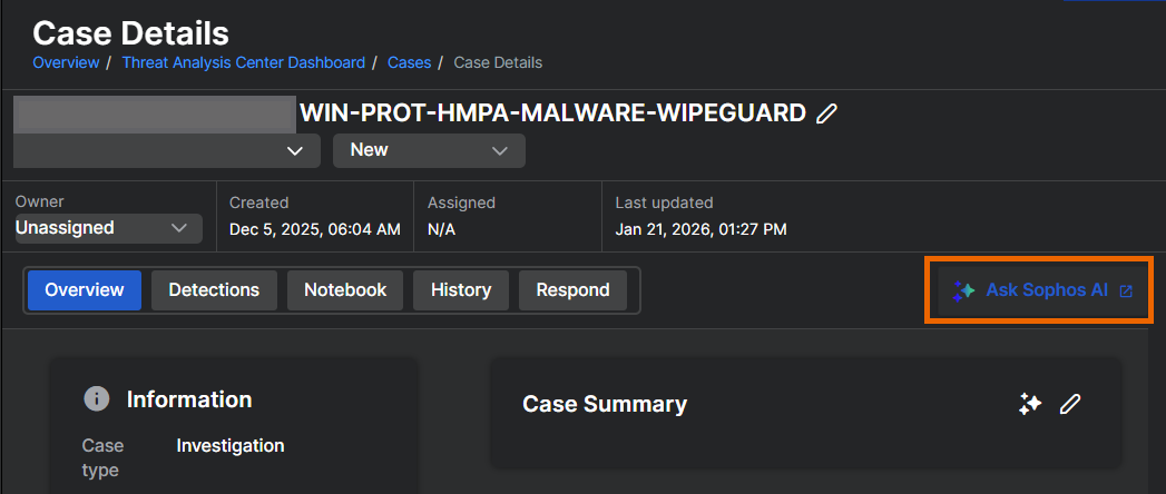 You can use Ask AI to load details of a threat case directly into the AI assistant.