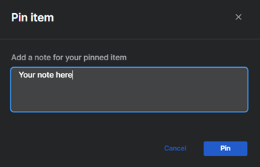 (Optional) In Pin item, add a note to say why the item is important.