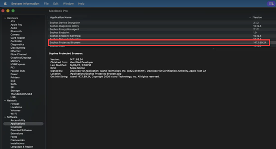 - On the left pane, expand Software, then click Applications.