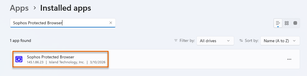 Go to Settings > Apps > Installed Apps, and search for Sophos Protected Browser.