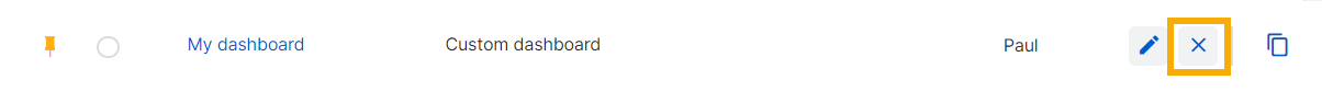 In the row for that dashboard, click the cross in the penultimate column on the right.
