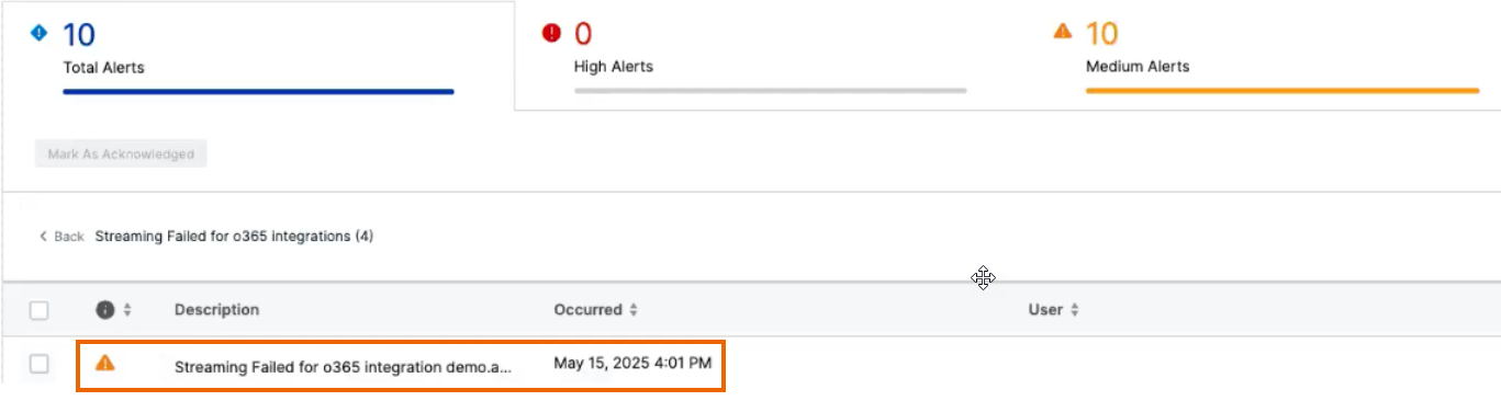 Sophos Central generates a medium severity alert when an integration remains offline or in a "failed" condition for 24 hours.