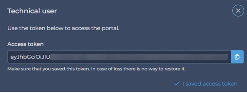 The new user is shown in the user list. If you need to change the token or the validity end date, you must be signed in as that user.