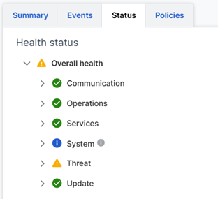 Each assessment shows a status: Good (Green), Warning (Orange), Bad (Red), or Info. The status of each assessment contributes to the overall health, unless the status is Info.