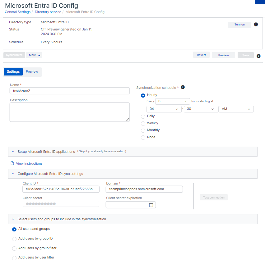 For more information on configuring your directory source see Set up synchronization with Microsoft Entra ID.