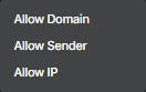 a la derecha de la tabla del informe para permitir un remitente, un dominio de remitente o una dirección IP.