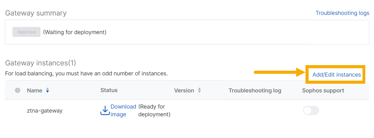 Haga clic en la nueva puerta de enlace para abrir su página de detalles. Haga clic en Añadir/Editar instancias.