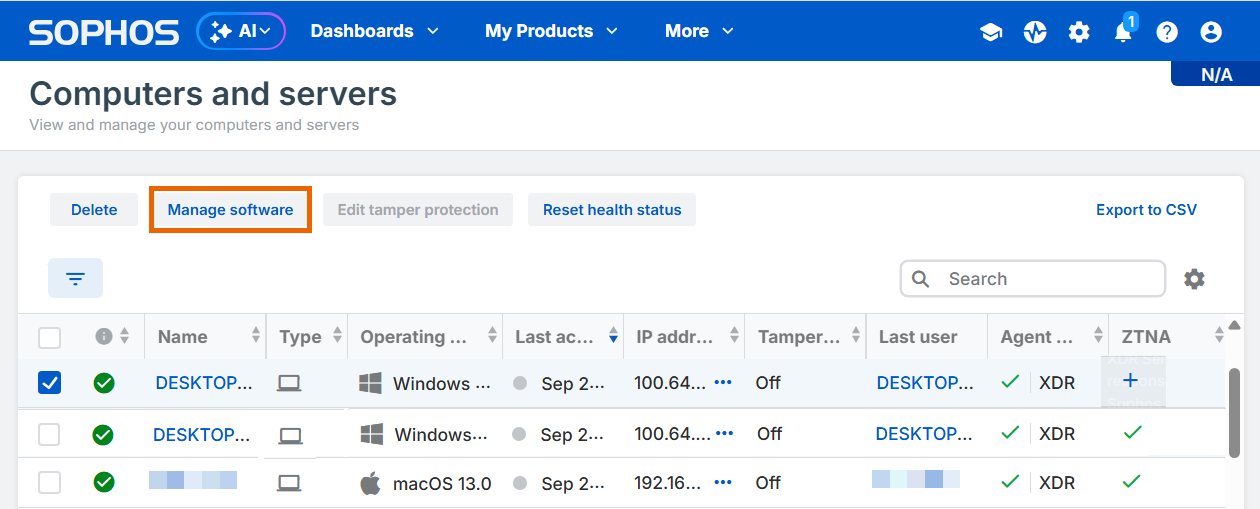 En Sophos Central, vaya a Dispositivos > Ordenadores y servidores.