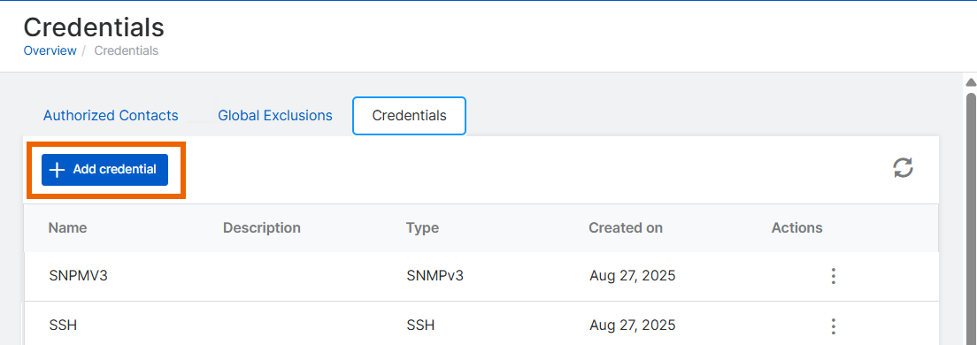 Cliccare su Aggiungi credenziale.