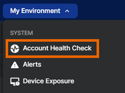 「アカウントの状態のチェック」は、「ダッシュボード」またはタスクバーからアクセスできます。「使用環境 > アカウントの状態のチェック」の順に選択します。