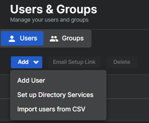 ユーザーを追加またはインポートするオプションの場所は?