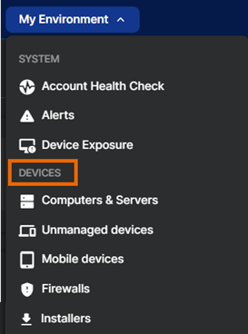 使用環境 > デバイス」に移動します。このセクションでは、ファイアウォール、ZTNAゲートウェイ、ワイヤレスアクセスポイント、スイッチなど、管理するすべてのデバイスに簡単にアクセスできます。