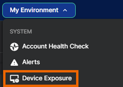 「デバイスの露出」は 「脅威分析センター」の下にはありません。「使用環境 > デバイスエクスポージャ」の順に選択します。
