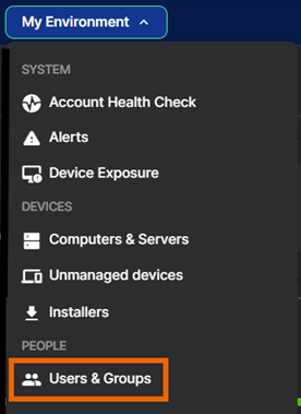 「ユーザーとグループ」(People) は現在、「ユーザーとグループ」(Users & Groups) と呼ばれています。「使用環境 > ユーザーとグループ」の順に選択します。