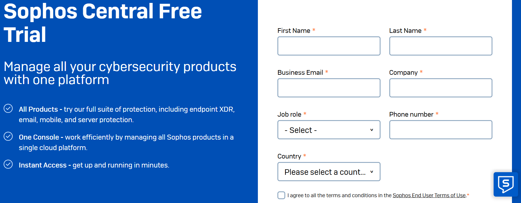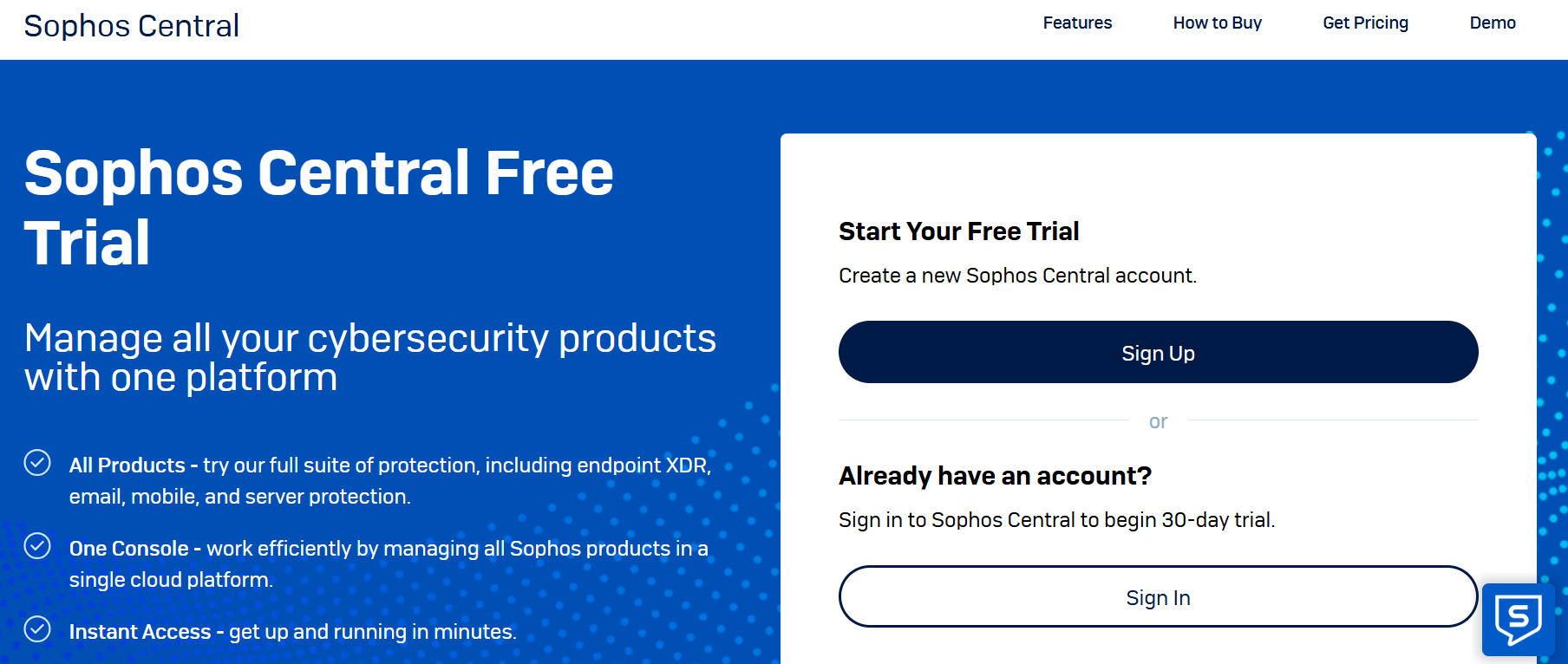 https://www.sophos.com/en-us/products/sophos-central/free-trial にアクセスし、「サインアップ」をクリックします。