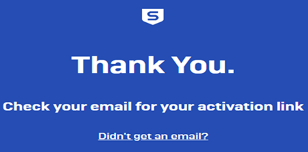 アクティベーションリンクがメールアドレスに送信されたことを確認するメッセージが表示されます。