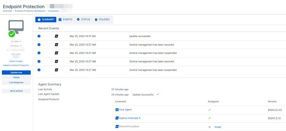 8. ページの他のタブをクリックして、イベントの完全な履歴、デバイスに適用されているポリシーなどを表示します。
